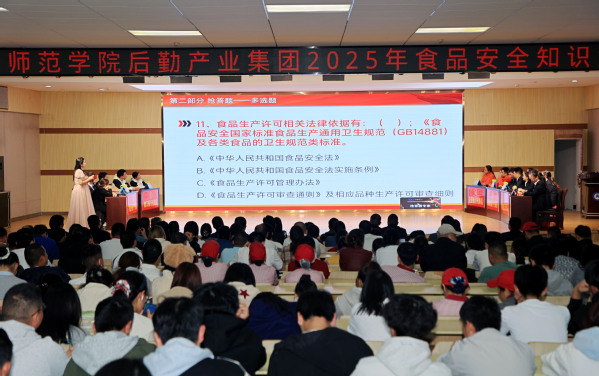 本次竞赛活动由后勤产业集团主办,赛前校内各餐厅全体从业人员已通过集中培训与初赛选拔,最终7支队伍21名选手脱颖而出。竞赛设必答题、抢答题、风险题三个环节,题目涵盖《食品安全法》基础知识、校园食堂卫生标准、日常饮食误区、食品添加剂识别等内容,兼具专业性与实用性,聚焦校园餐饮安全核心环节。